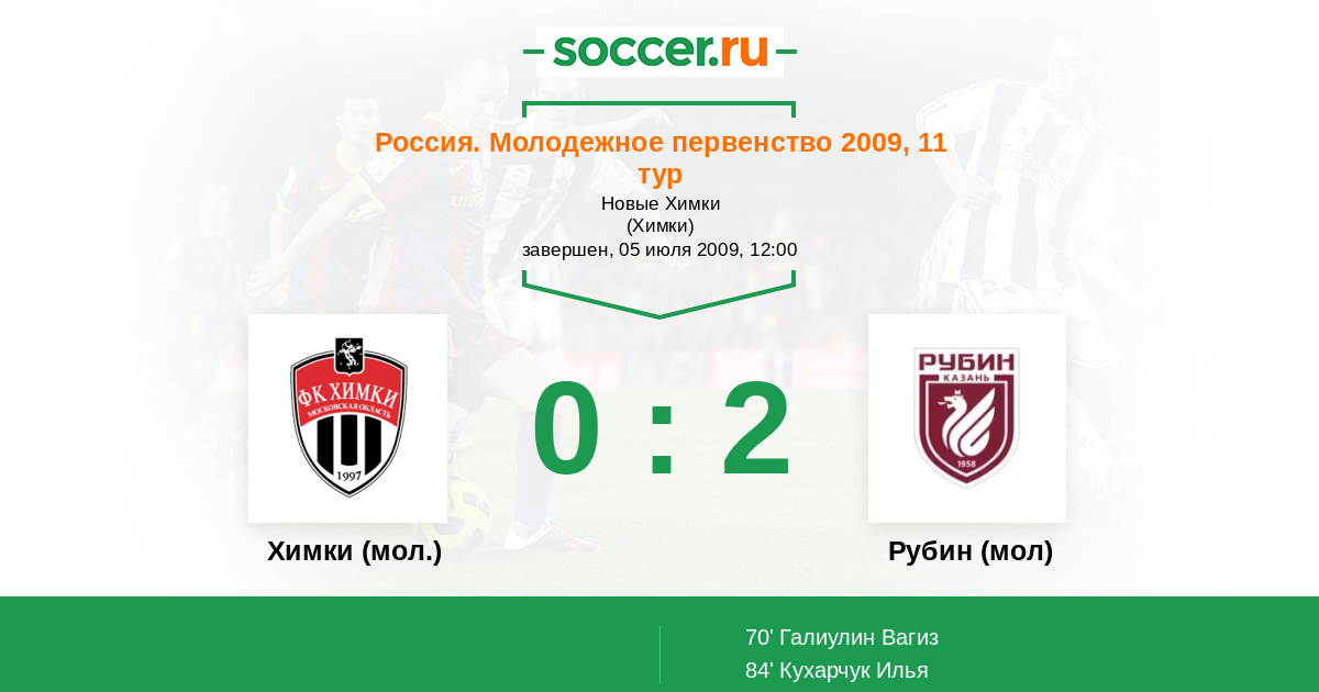 Протокол матча Химки (мол.) против Рубин (мол)