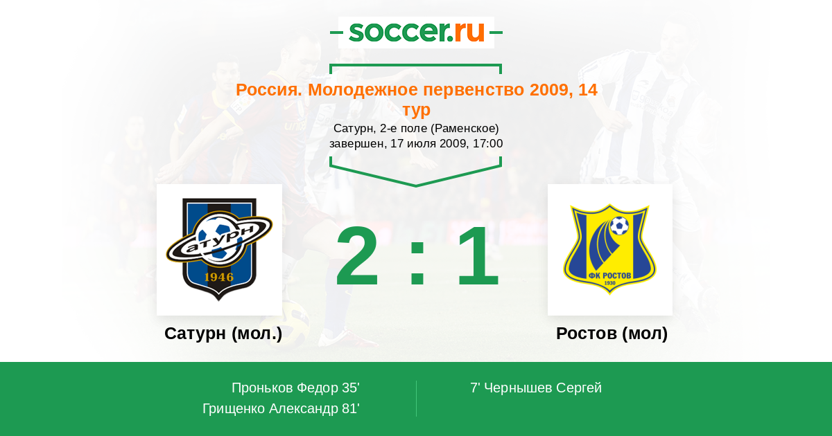 Протокол матча Сатурн (мол.) против Ростов (мол)