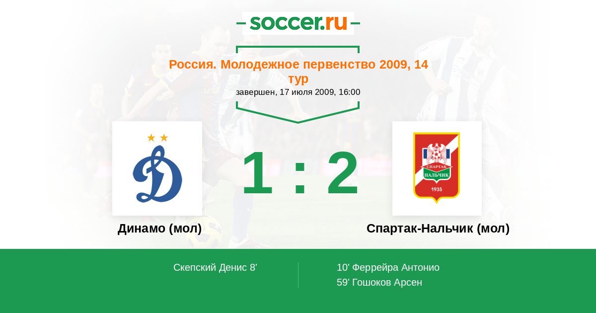 Протокол матча Динамо (мол) против Спартак-Нальчик (мол)