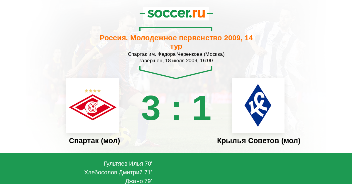 Протокол матча Спартак (мол) против Крылья Советов (мол)