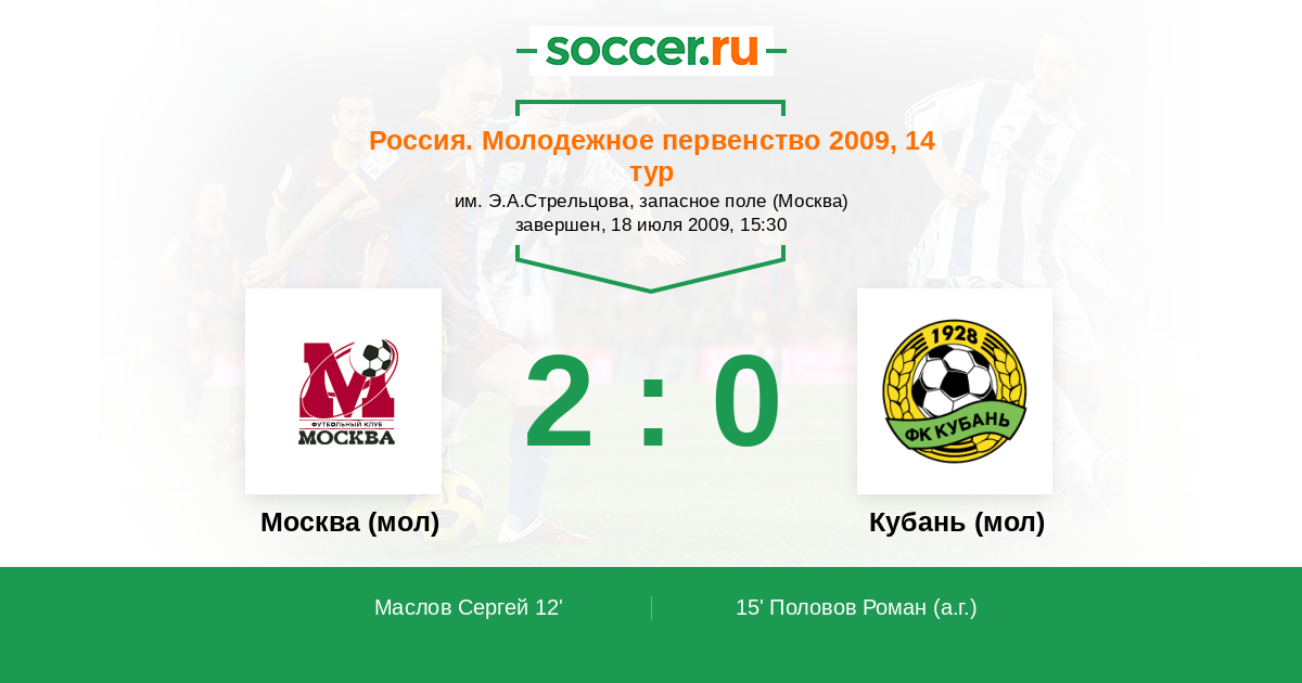 Протокол матча Москва (мол) против Кубань (мол)