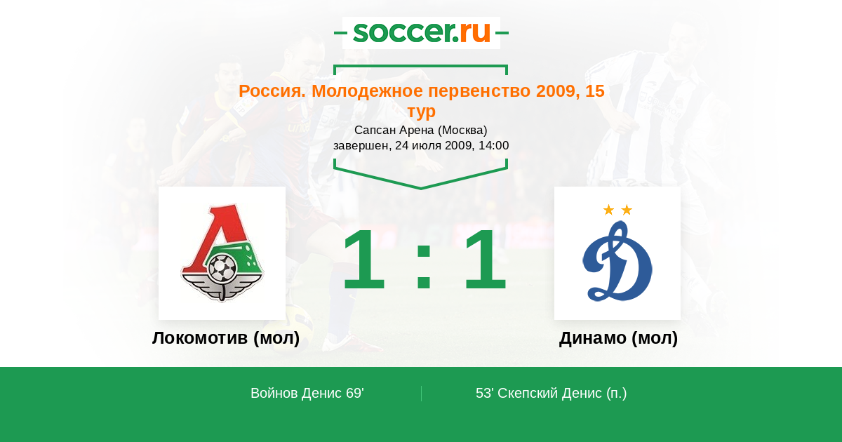 Протокол матча Локомотив (мол) против Динамо (мол)