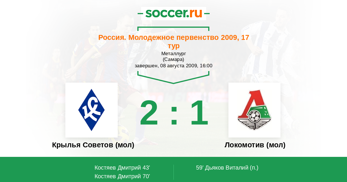 Протокол матча Крылья Советов (мол) против Локомотив (мол)