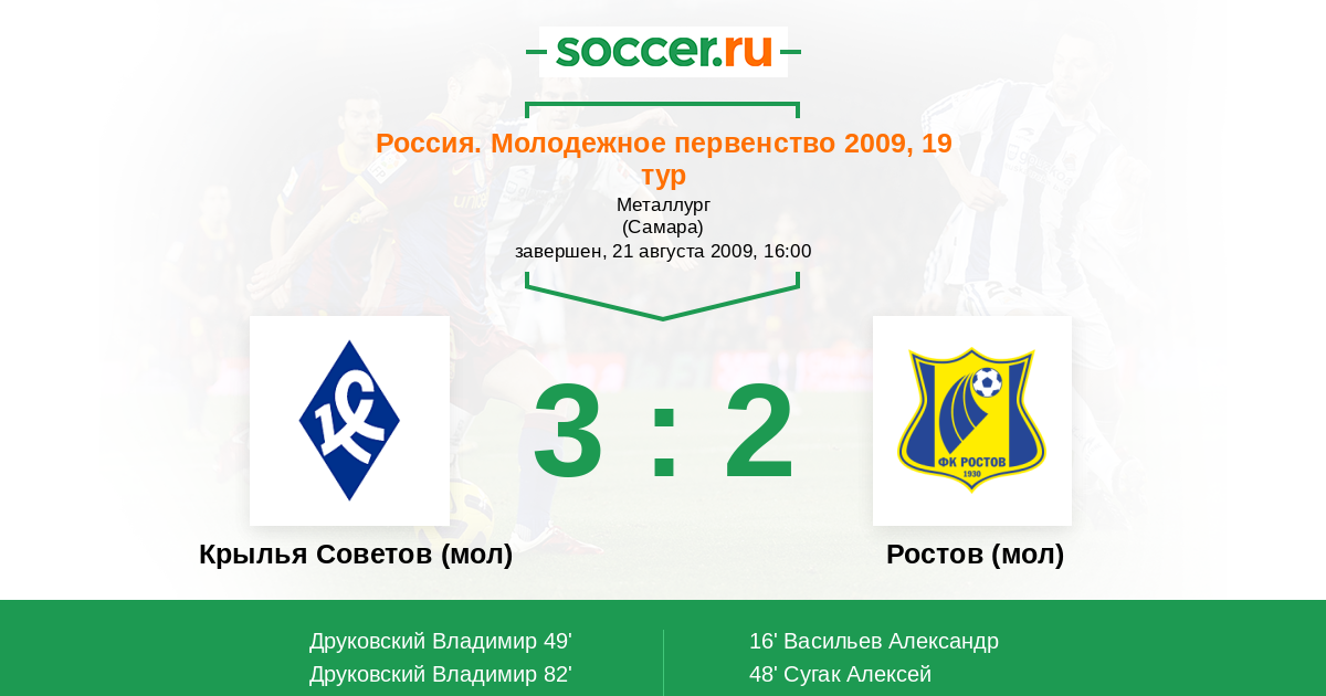Протокол матча Крылья Советов (мол) против Ростов (мол)