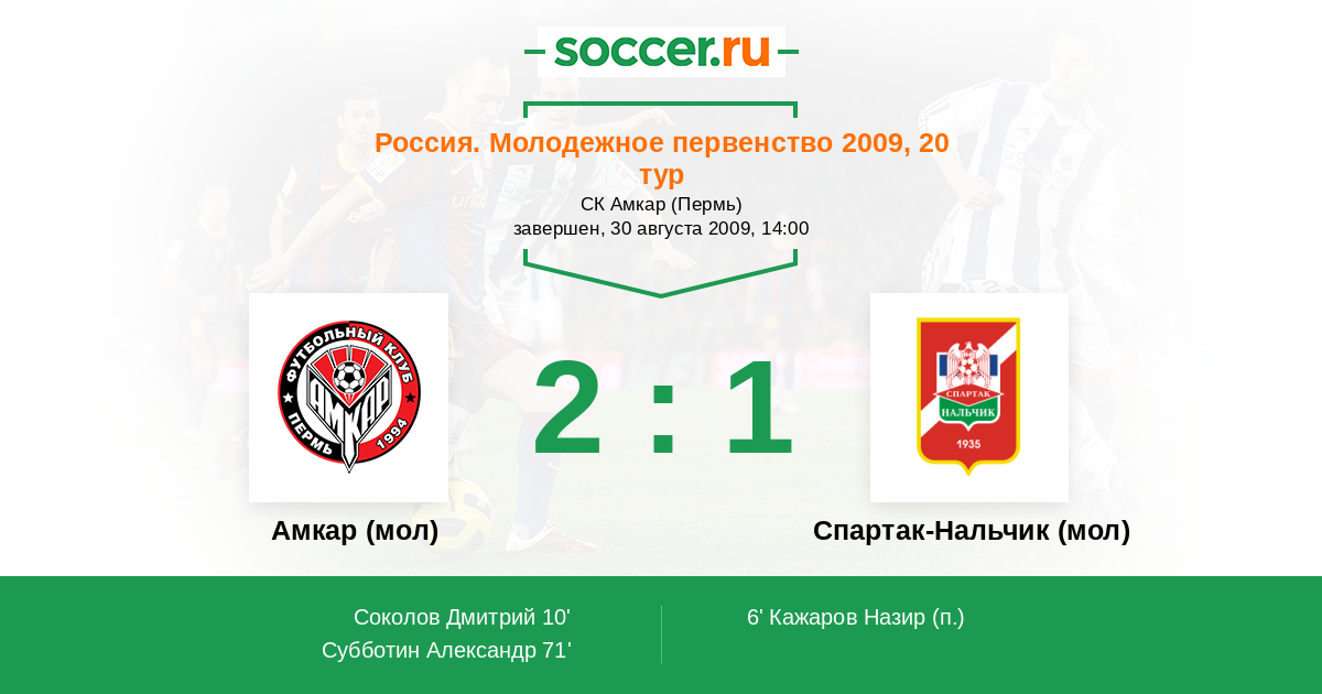 Протокол матча Амкар (мол) против Спартак-Нальчик (мол)