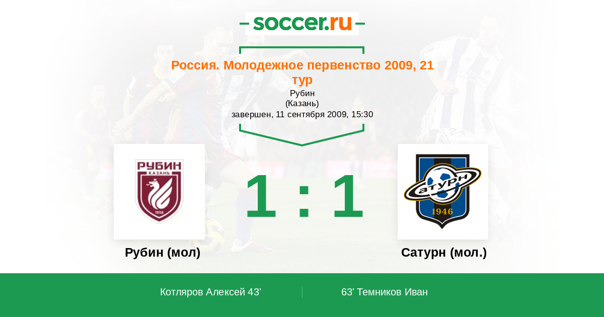 Протокол матча Рубин (мол) против Сатурн (мол.)