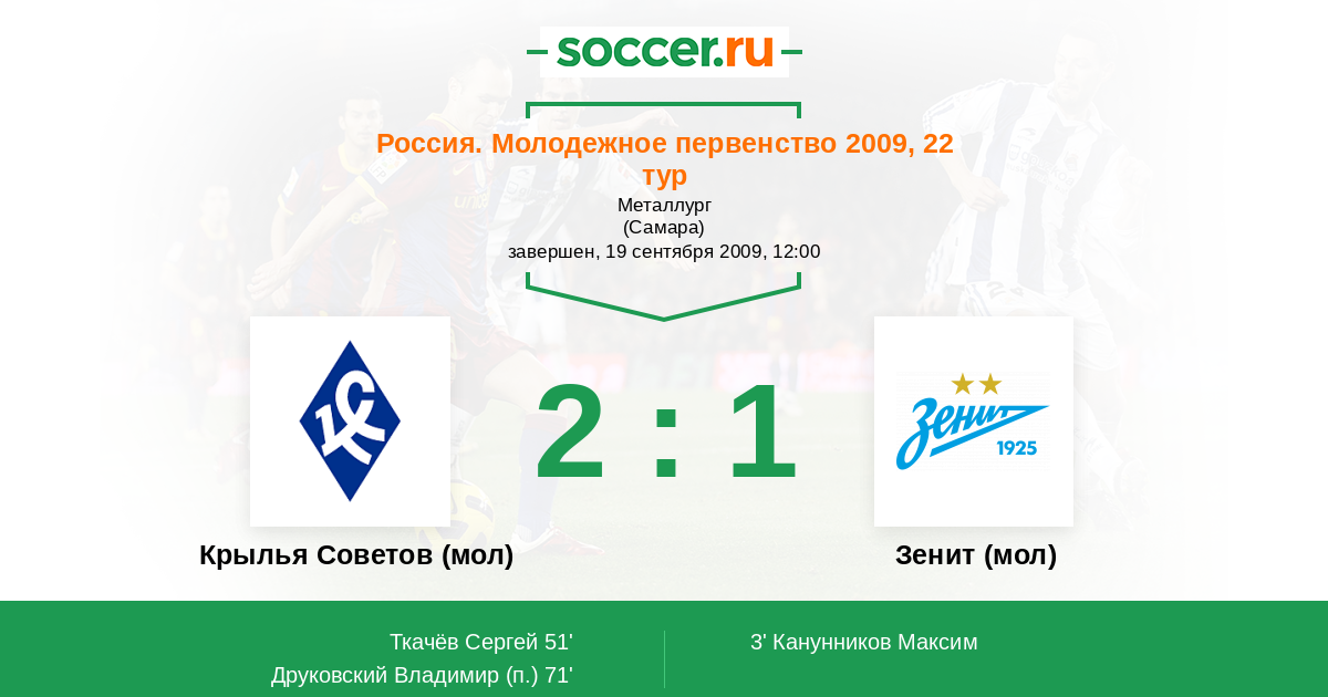 Протокол матча Крылья Советов (мол) против Зенит (мол)