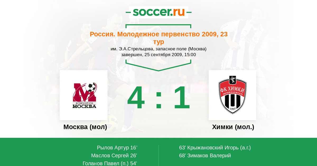 Протокол матча Москва (мол) против Химки (мол.)
