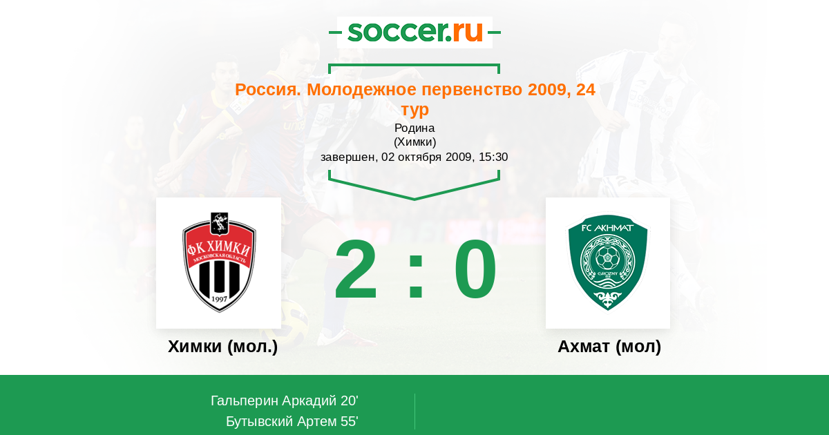 Протокол матча Химки (мол.) против Терек (мол)