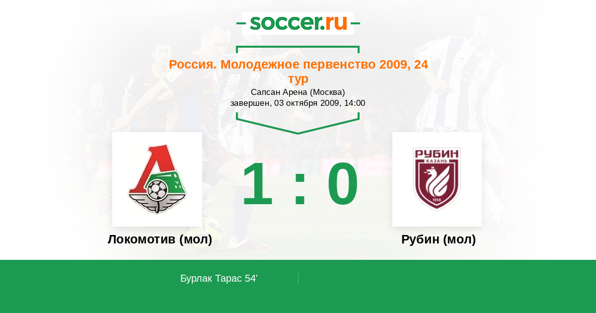 Протокол матча Локомотив (мол) против Рубин (мол)