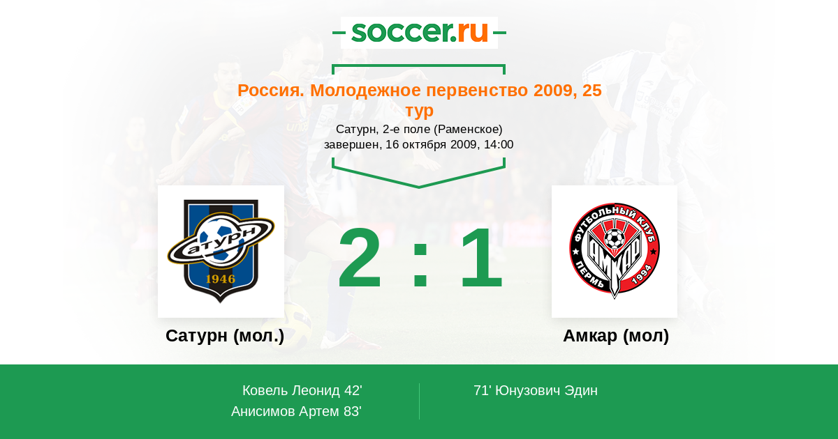 Протокол матча Сатурн (мол.) против Амкар (мол)