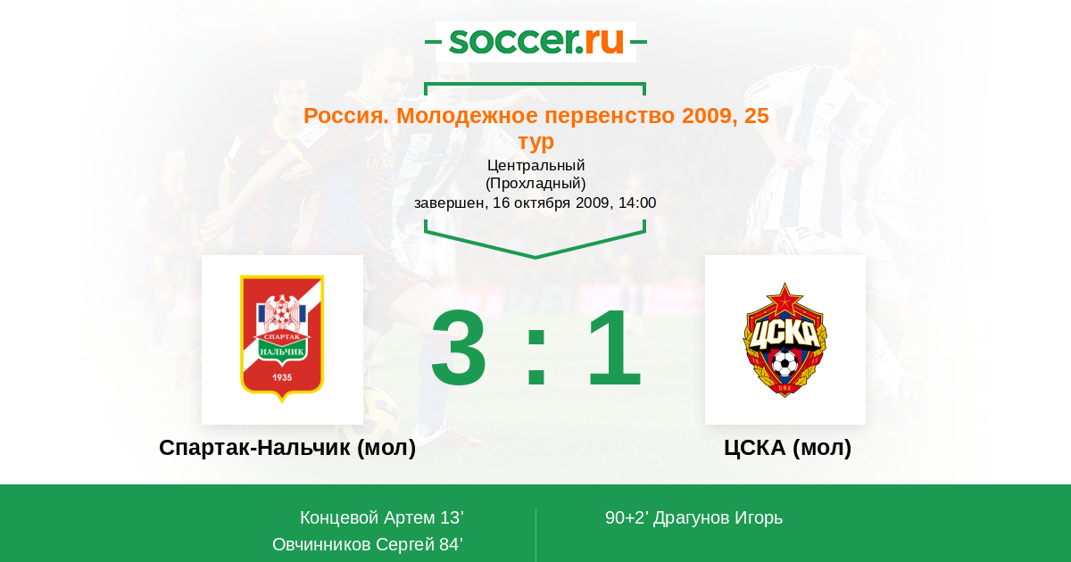 Протокол матча Спартак-Нальчик (мол) против ЦСКА (мол)