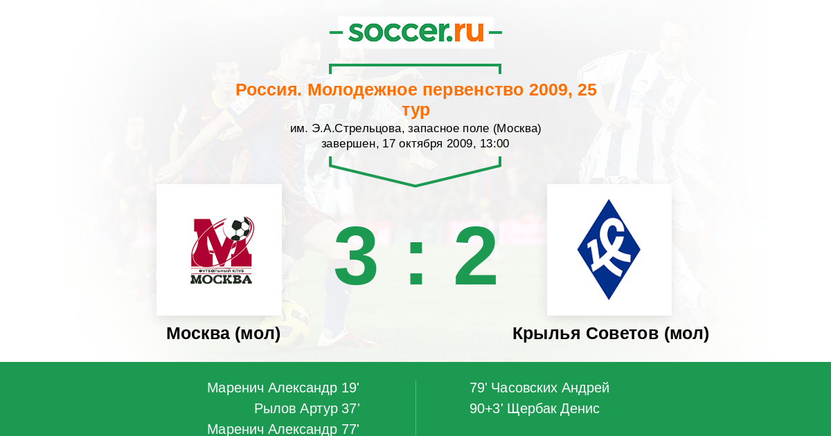 Протокол матча Москва (мол) против Крылья Советов (мол)