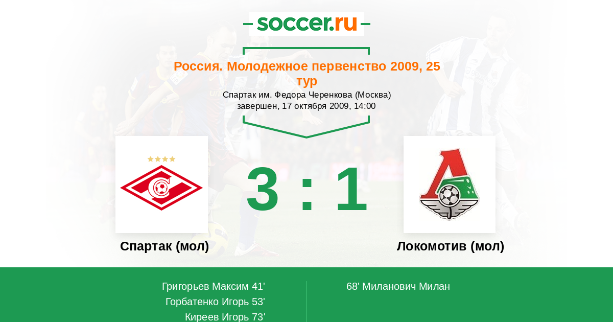 Протокол матча Спартак (мол) против Локомотив (мол)
