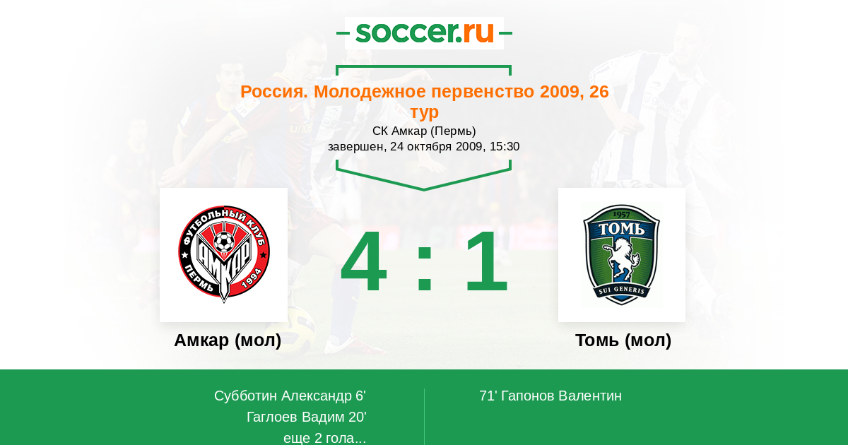 Протокол матча Амкар (мол) против Томь (мол)