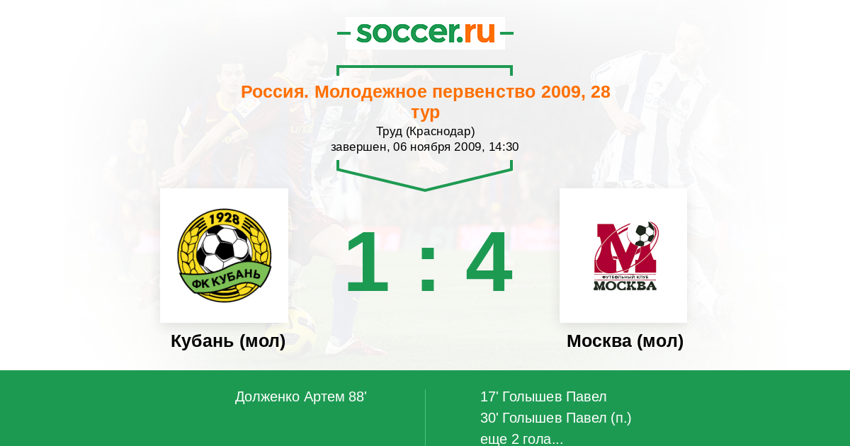 Протокол матча Кубань (мол) против Москва (мол)