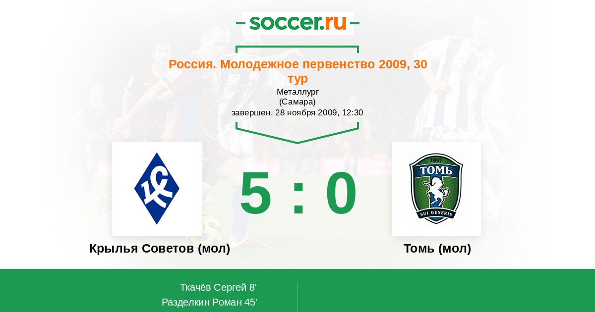 Протокол матча Крылья Советов (мол) против Томь (мол)