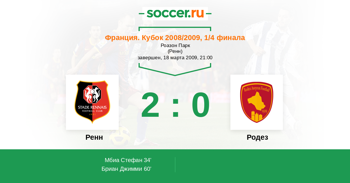 Протокол матча Ренн против Родез