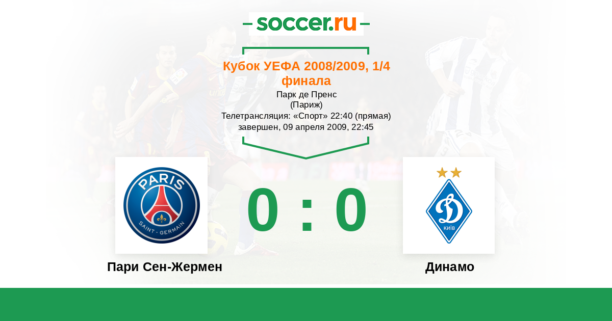 Протокол матча Пари Сен-Жермен против Динамо