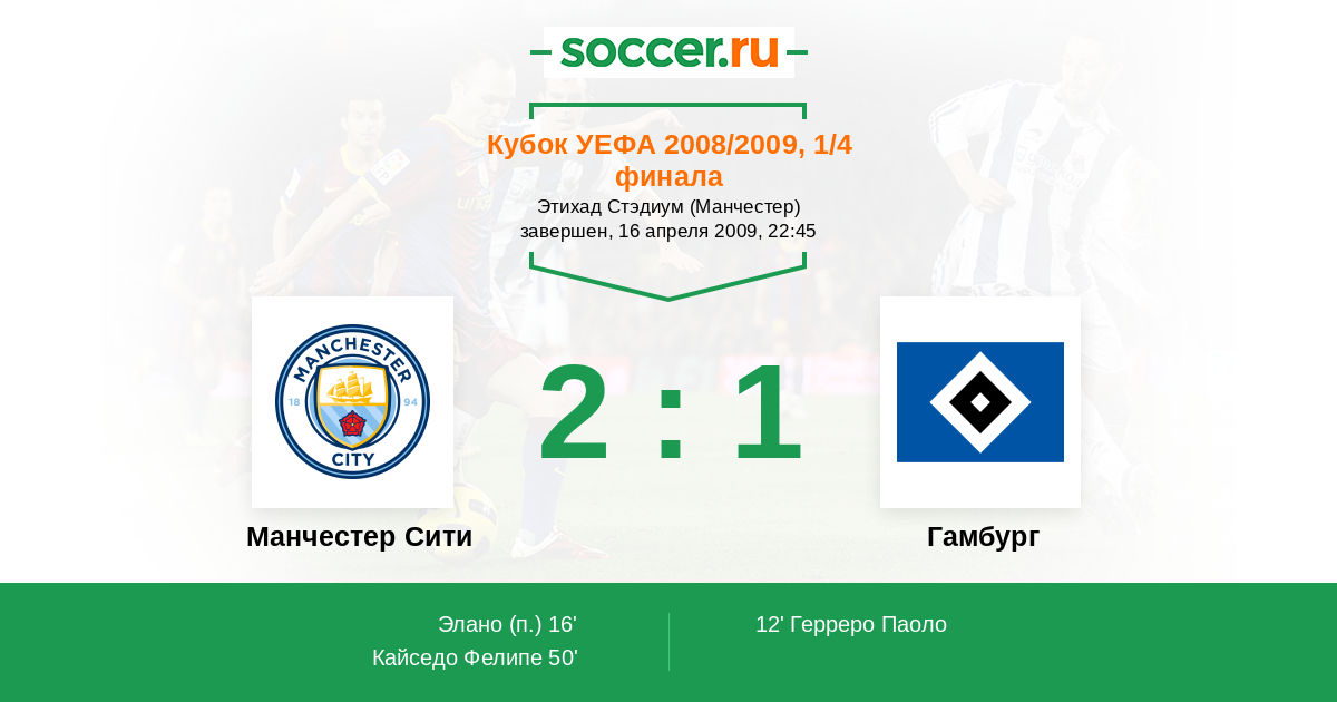 Протокол матча Манчестер Сити против Гамбург