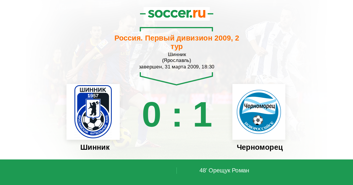 Протокол матча Шинник против Черноморец