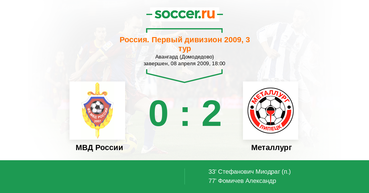 Протокол матча МВД России против Металлург