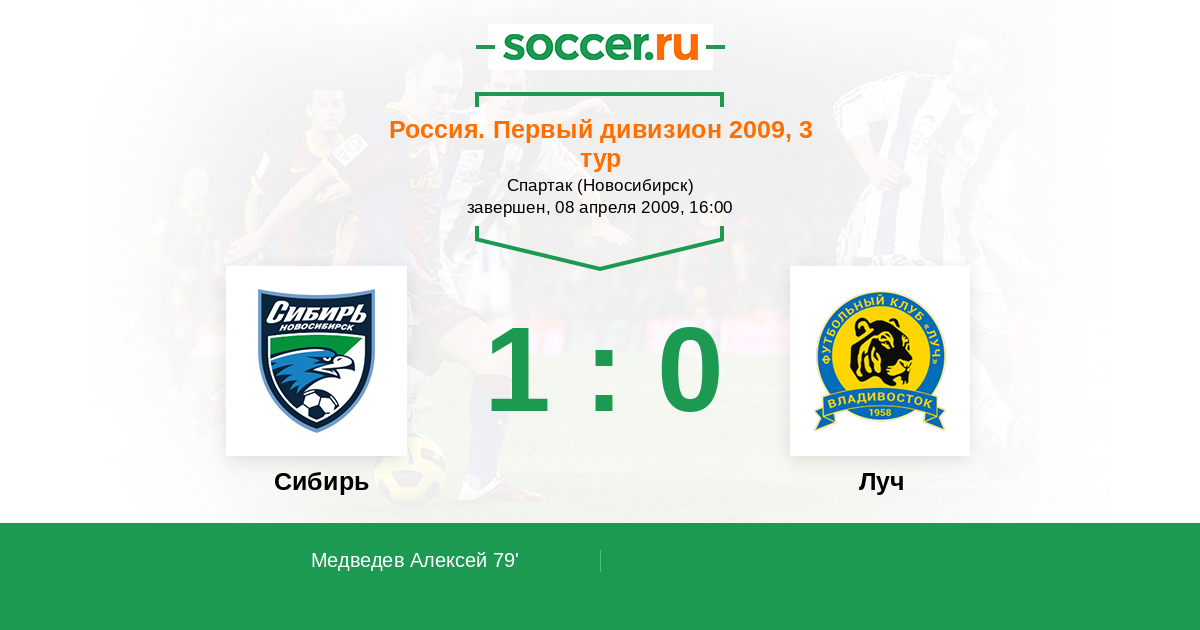 Протокол матча Сибирь против Луч