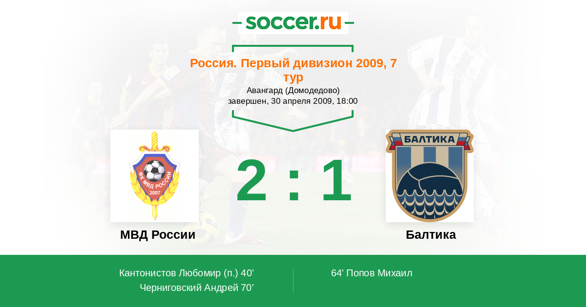Протокол матча МВД России против Балтика
