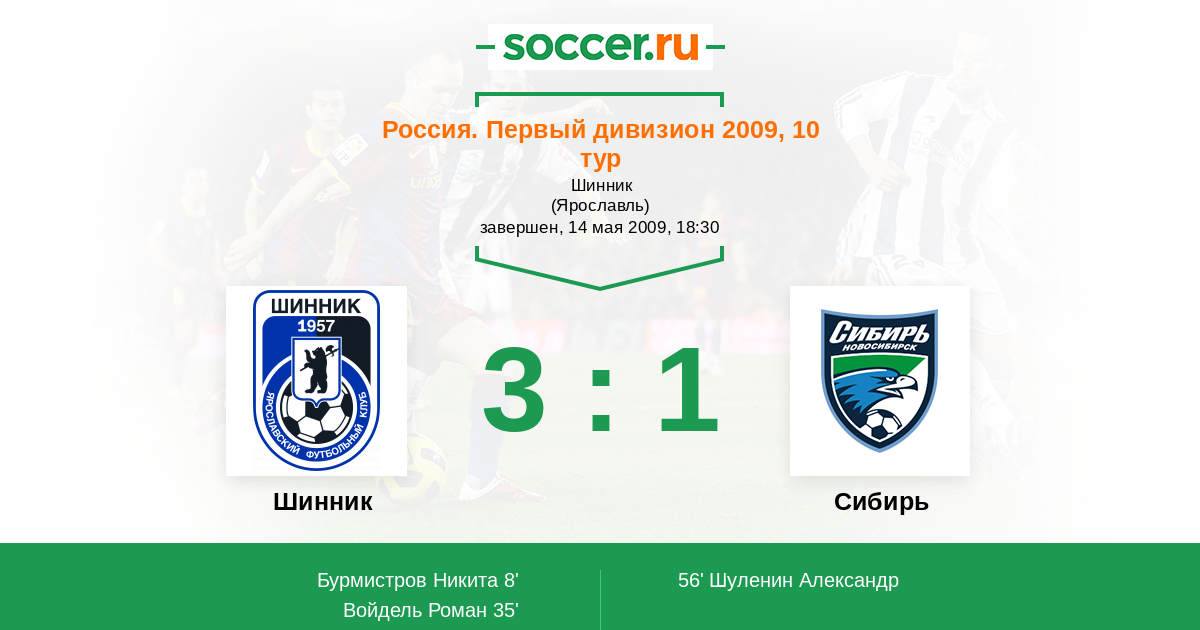 Протокол матча Шинник против Сибирь