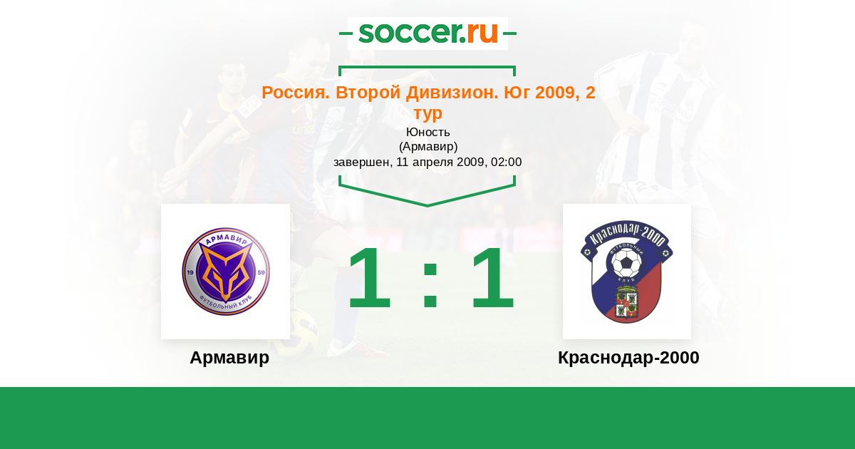 Россия. Вторая лига. Группа 1 30.07.2009 Краснодар-2000 Логотип футбольный клуб Краснодар-2000 1:2 Логотип футбольный клуб Торпедо Армавир Торпедо Армавир