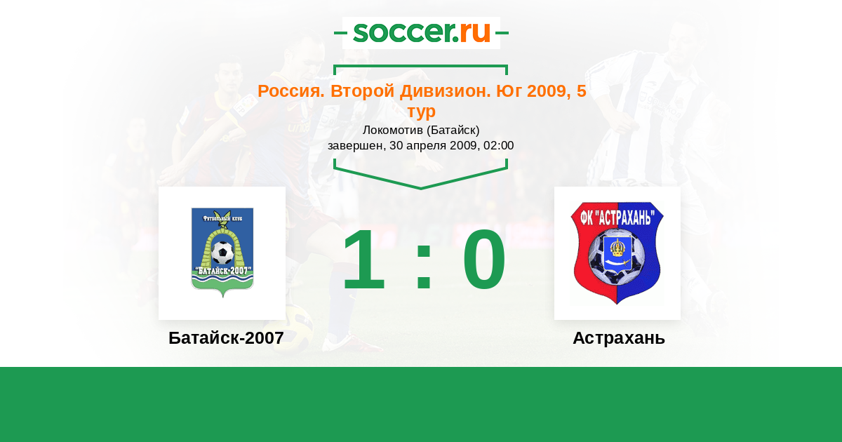 Россия. Вторая лига. Группа 1 22.04.2010 Астрахань Логотип футбольный клуб Астрахань 2:0 Логотип футбольный клуб Батайск-2007 Батайск-2007