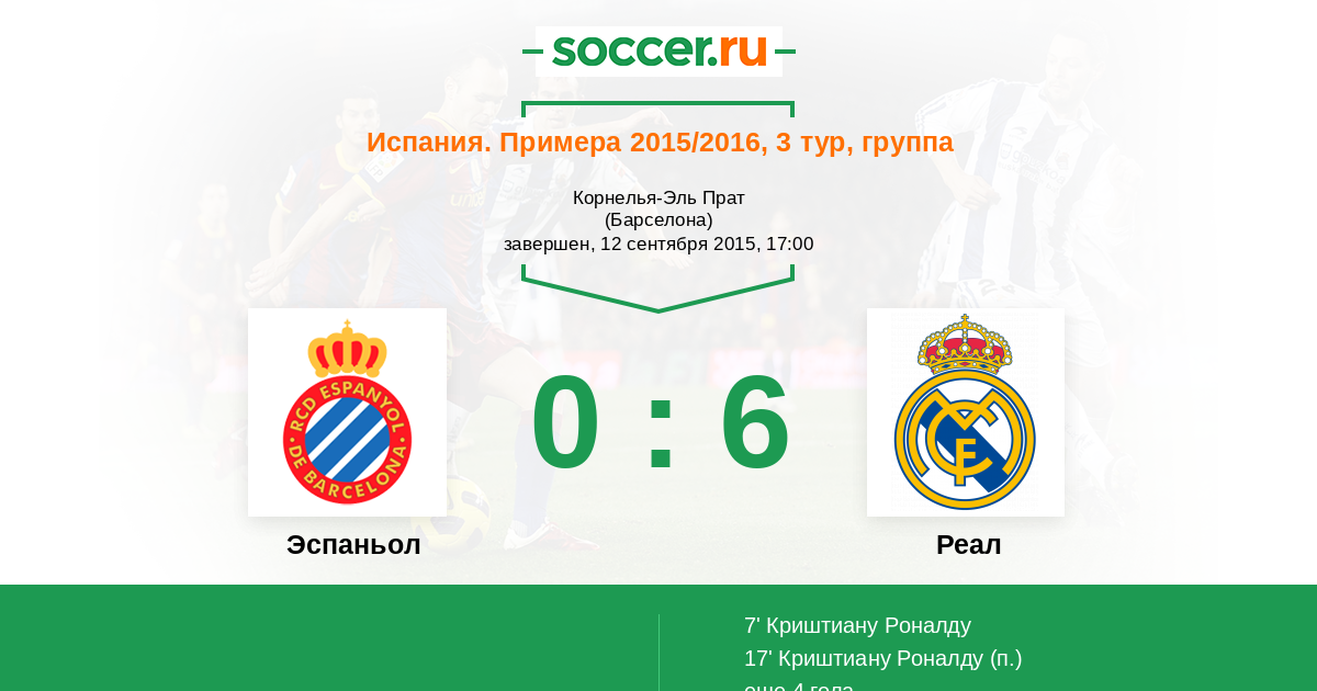 81' (0:6) Криштиану Роналду (7) (Васкес Лукас (18))