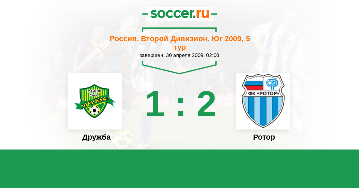Россия. Вторая лига. Группа 1 18.08.2009 Ротор Логотип футбольный клуб Ротор (Волгоград) 0:3 Логотип футбольный клуб Дружба (Майкоп) Дружба