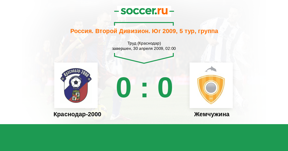 Россия. Вторая лига. Группа 1 18.08.2009 Жемчужина Логотип футбольный клуб Жемчужина (Сочи) 2:0 Логотип футбольный клуб Краснодар-2000 Краснодар-2000