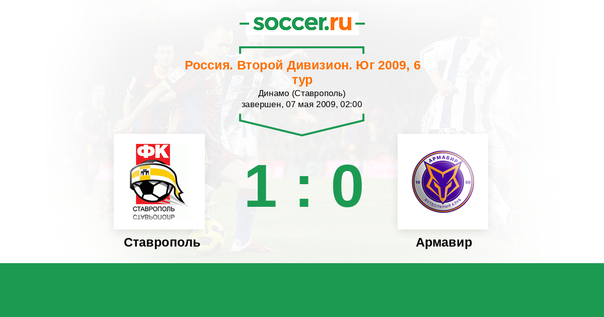 Россия. Вторая лига. Группа 1 02.11.2009 Динамо Ставрополь   2:0 Логотип футбольный клуб Ставрополь Ставрополь