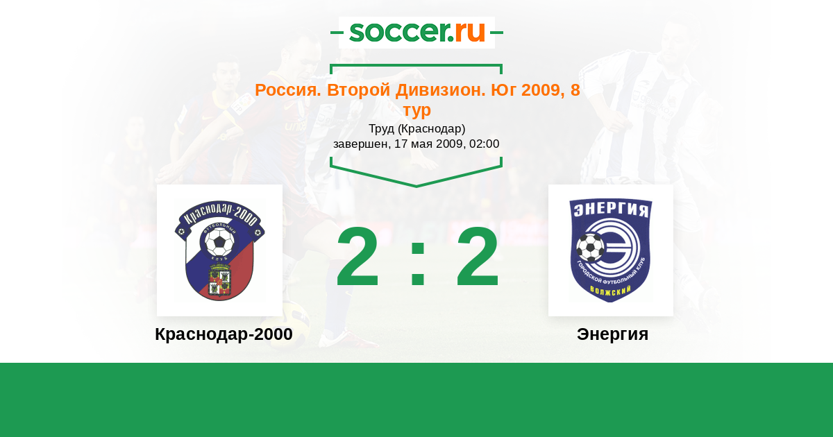 Россия. Вторая лига. Группа 1 03.09.2009 Энергия Логотип футбольный клуб Энергия (Волжский) 1:1 Логотип футбольный клуб Краснодар-2000 Краснодар-2000