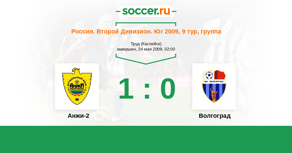 Россия. Вторая лига. Группа 1 10.09.2009 Волгоград Логотип футбольный клуб Волгоград 4:2 Логотип футбольный клуб Дагдизель (Махачкала) Дагдизель