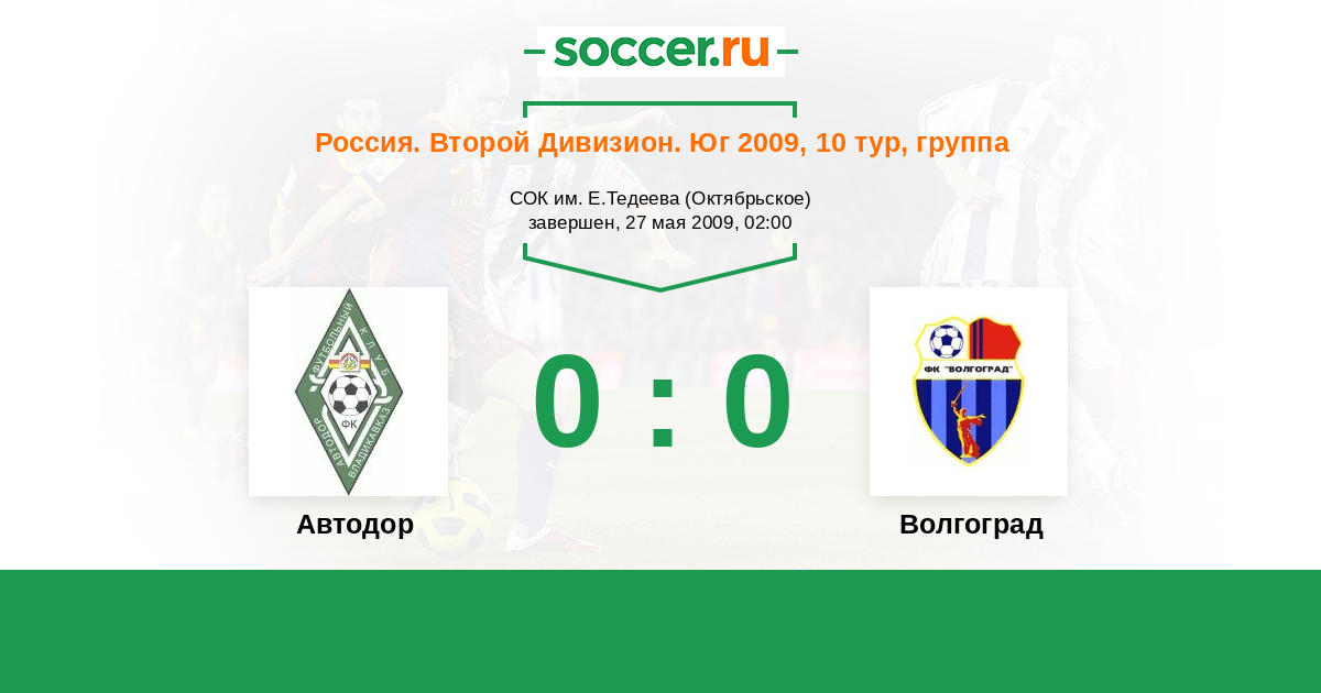 Россия. Вторая лига. Группа 1 13.09.2009 Волгоград Логотип футбольный клуб Волгоград 0:0 Логотип футбольный клуб Автодор (Владикавказ) Автодор