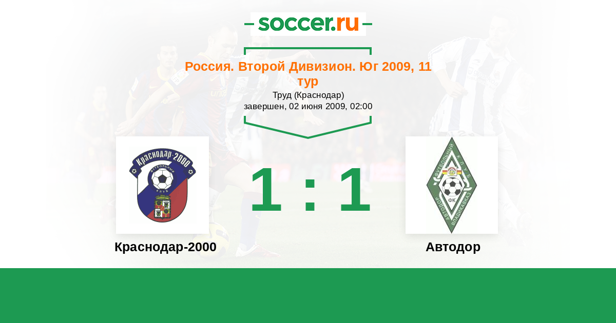 Россия. Вторая лига. Группа 1 15.10.2010 Краснодар-2000 Логотип футбольный клуб Краснодар-2000 3:3 Логотип футбольный клуб Автодор (Владикавказ) Автодор