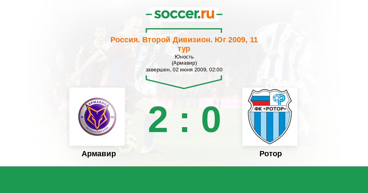 Россия. Вторая лига. Группа 1 20.09.2009 Ротор Логотип футбольный клуб Ротор (Волгоград) 0:3 Логотип футбольный клуб Торпедо Армавир Торпедо Армавир