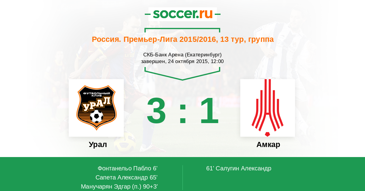Протокол матча Урал против Амкар