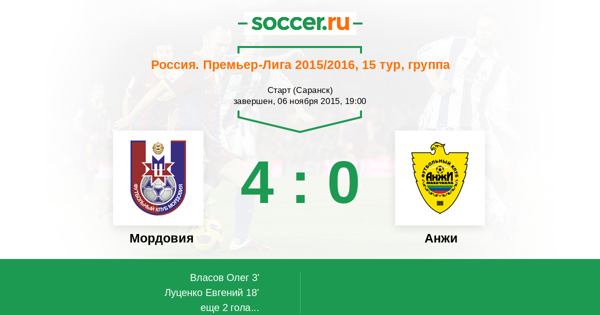 Протокол матча Мордовия против Анжи