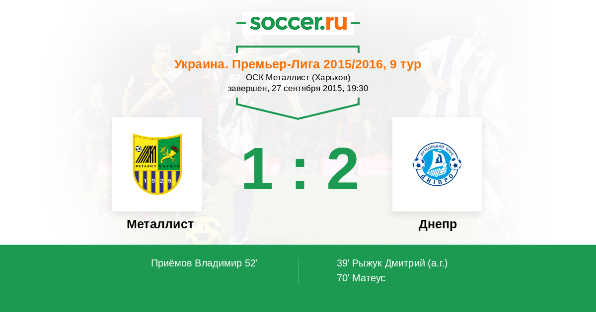 Протокол матча Металлист против Днепр