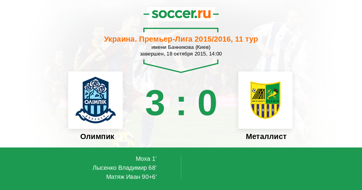 Протокол матча Олимпик против Металлист