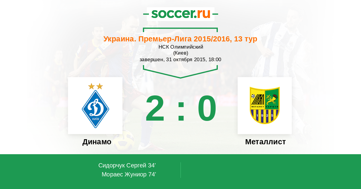 74' (2:0) Мораес Жуниор (11) (Ярмоленко Андрей (10))