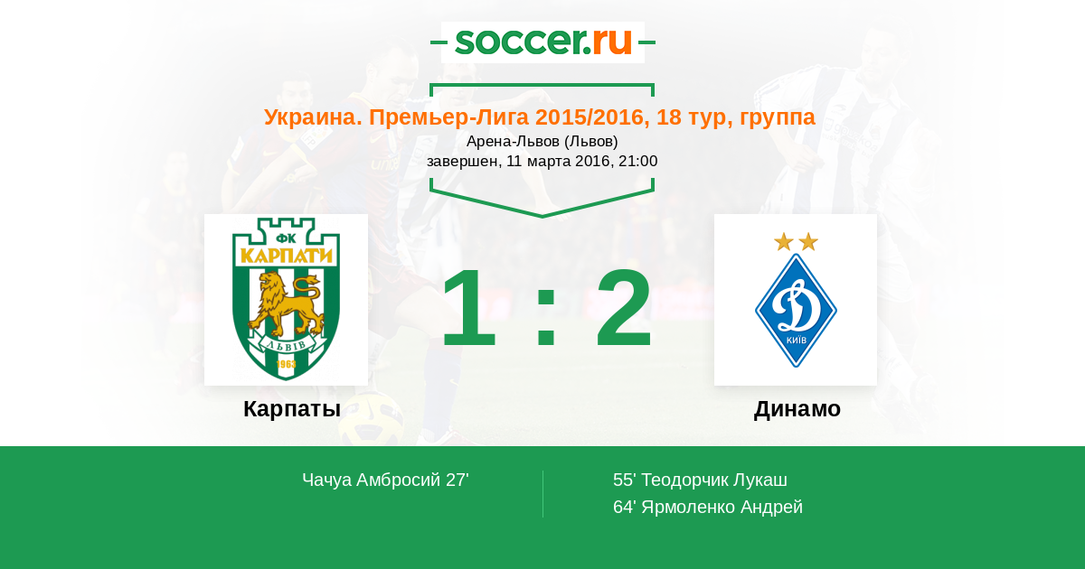 Протокол матча Карпаты против Динамо