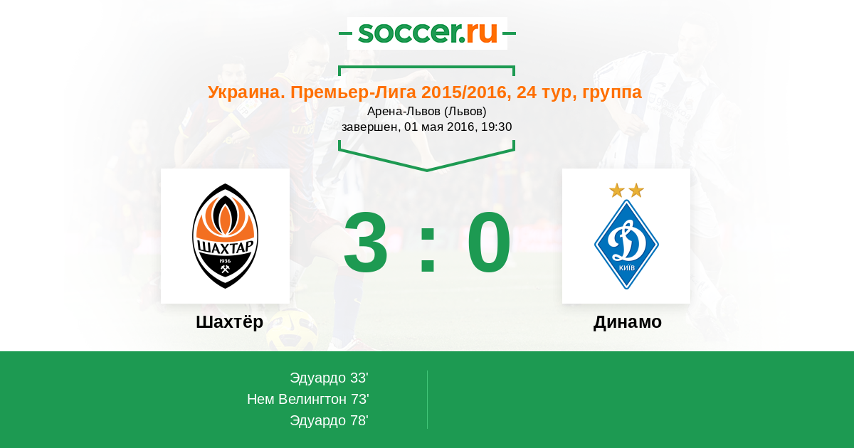 33' (1:0) Эдуардо (22) (Бернард (10))