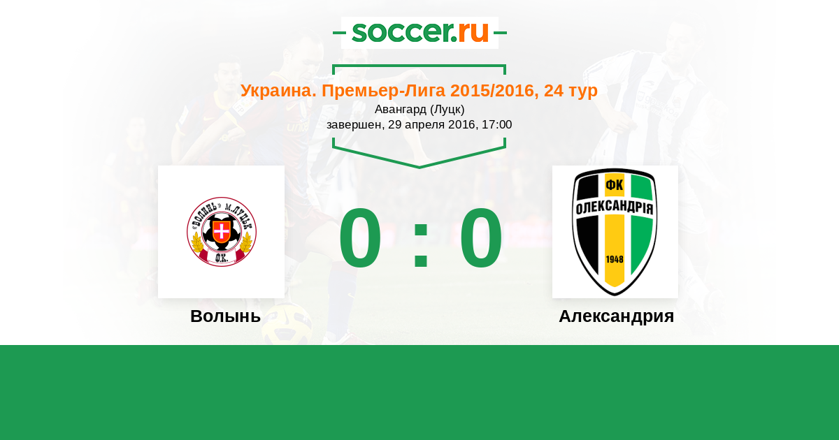Протокол матча Волынь против Александрия
