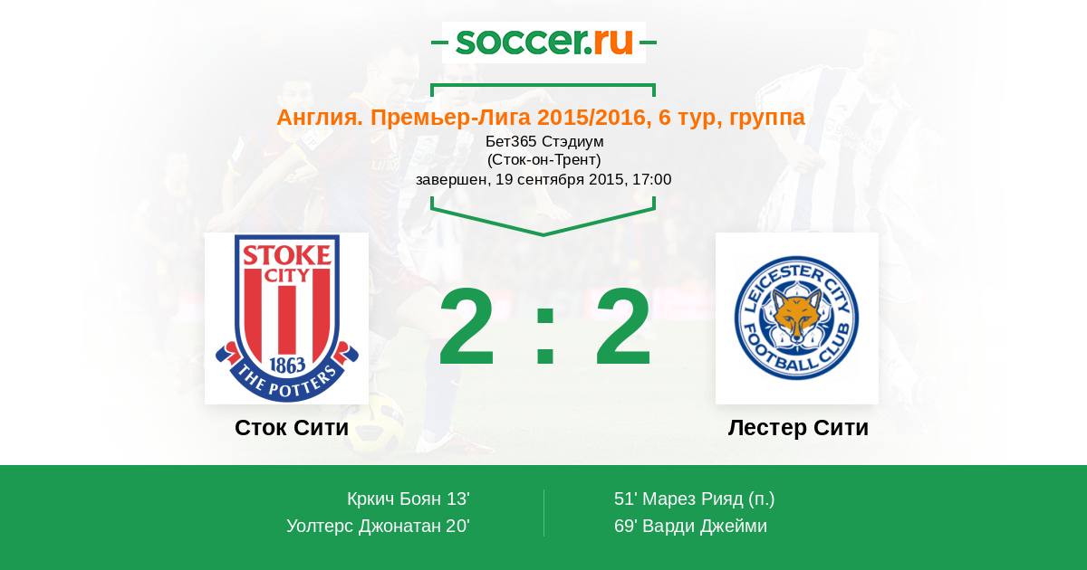 Протокол матча Сток Сити против Лестер Сити