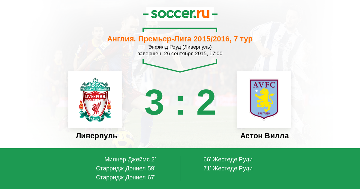 2' (1:0) Милнер Джеймс (7) (Коутиньо Филиппе (10))